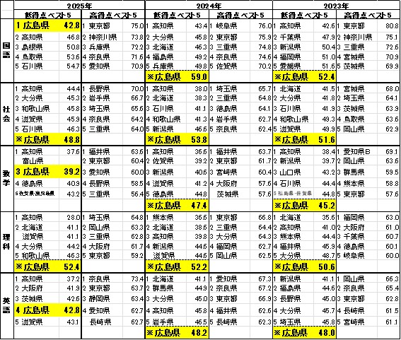 しかし、都道府県別の平均点を見ると、地域ごとの差は歴然。広島県の位置付けを正確に理解するためにも、全国データを知っておくことは非常に重要です。