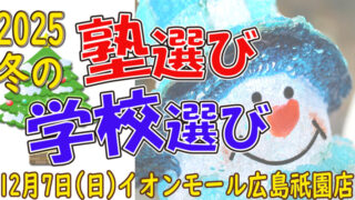 塾・学校選びに迷ったらコレ! 12/7イオンモール広島祇園で【冬の塾選び・学校選び】開催! 安佐南区の有名塾・広島市内の有名中学高校が一堂に会し、個別相談会を実施。お子様一人ひとりに合った進路を見つけよう! #塾選び #学校選び #広島 #進学